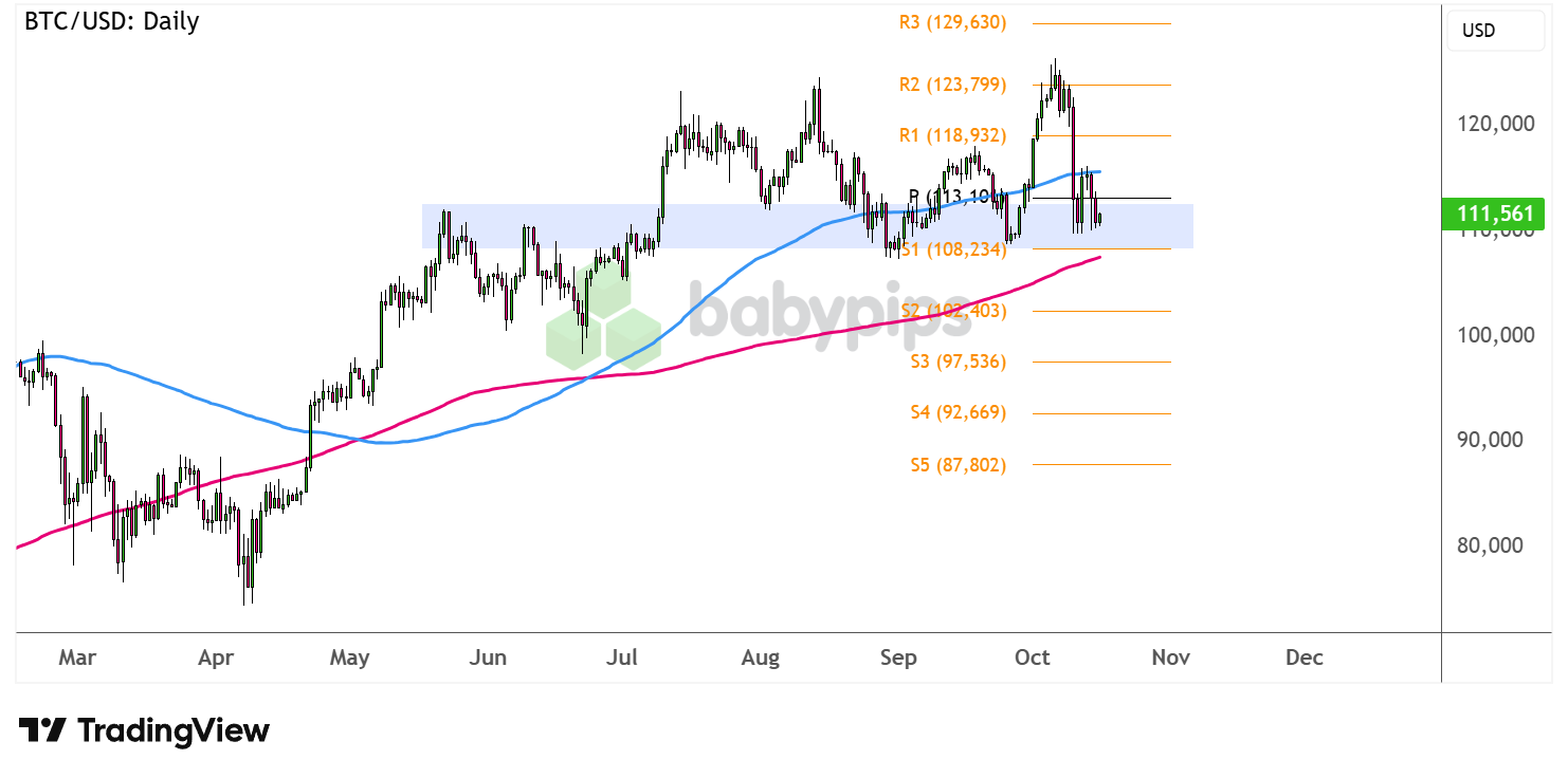 Price is hovering just above S1 ($108,234) which happens to line up with a former ceiling that held around the middle of the year. Support seems to be holding so far, but it’s also worth noting that this area could serve as the neckline of a reversal chart pattern.Remember that directional biases and volatility conditions in market price are typically driven by fundamentals. If you haven’t yet done your homework on the U.S. dollar and the bitcoin, then it’s time to check out the economic calendar and stay updated on daily fundamental news!