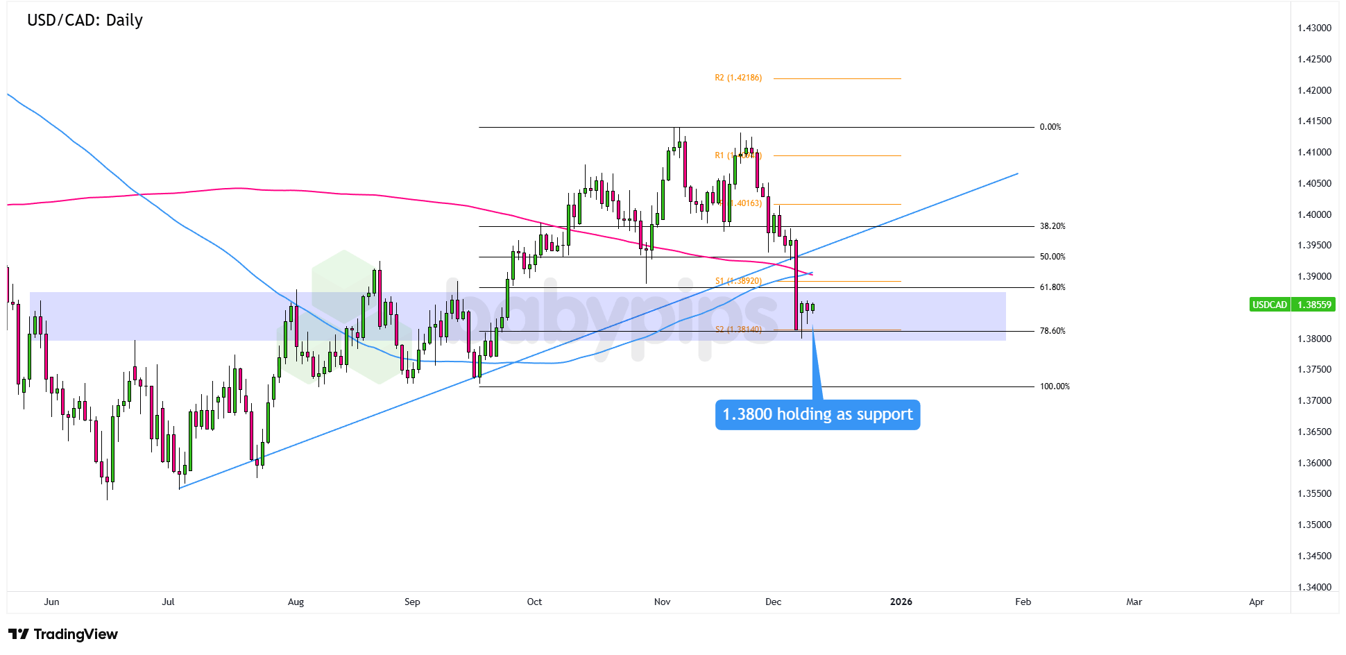 But if the pair prints more red candles and stays below the 1.3800 area of interest, that would confirm the downside breakout and could attract sellers toward 1.3750 or even the 1.3600 previous lows.