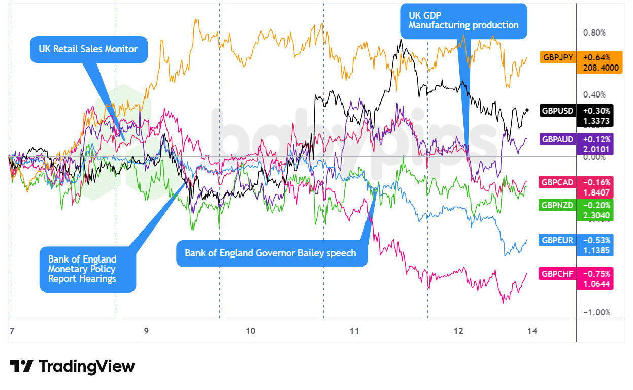 Overlay of GBP vs. Major Currencies Chart by TradingView