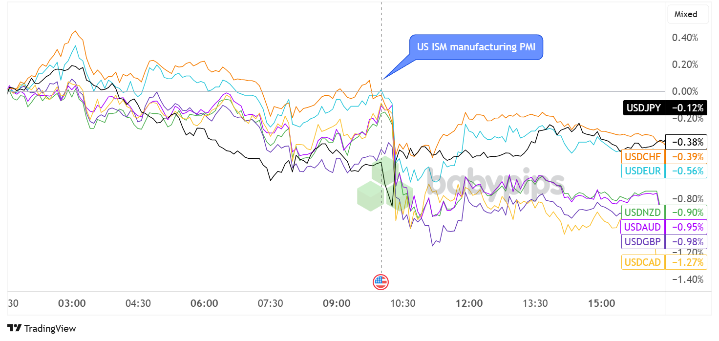 The Greenback, which already had been cruising lower leading up to the release of the ISM manufacturing PMI, had a mostly bearish initial reaction to the actual results as the upside surprise likely stoked risk appetite further.