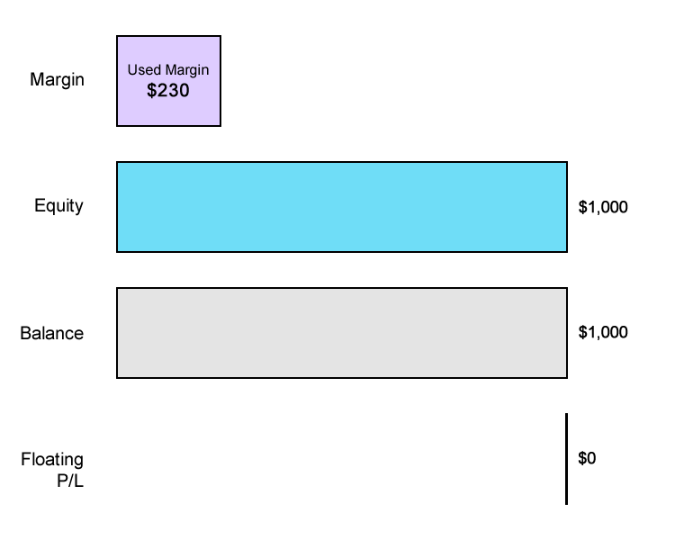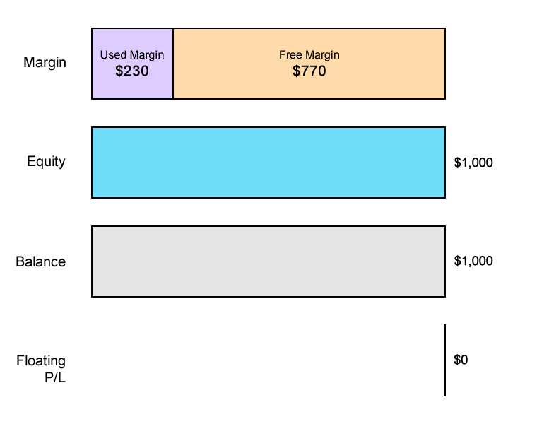 Free Margin = Equity - Used Margin $770 = $1,000 - $230