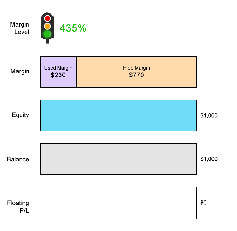 Margin Level = (Equity / Used Margin) x 100% 435% = ($1,000 / $230) x 100%