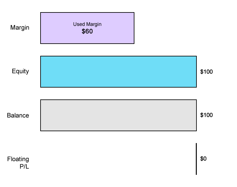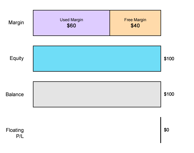 Free Margin = Equity - Used Margin $40 = $100 - $60