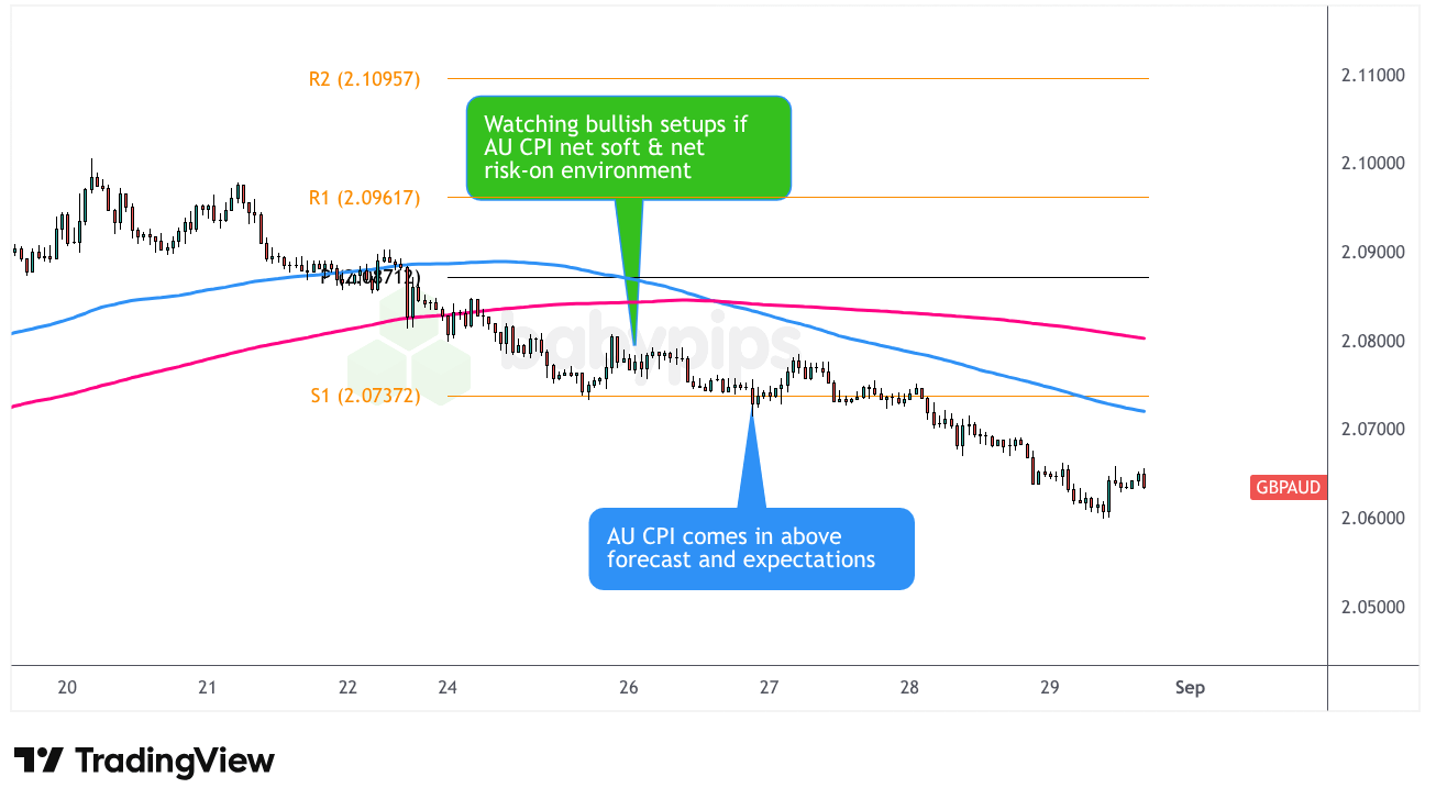 GBP/AUD Short: Net Bearish AUD Event outcome + Risk-On Scenario
