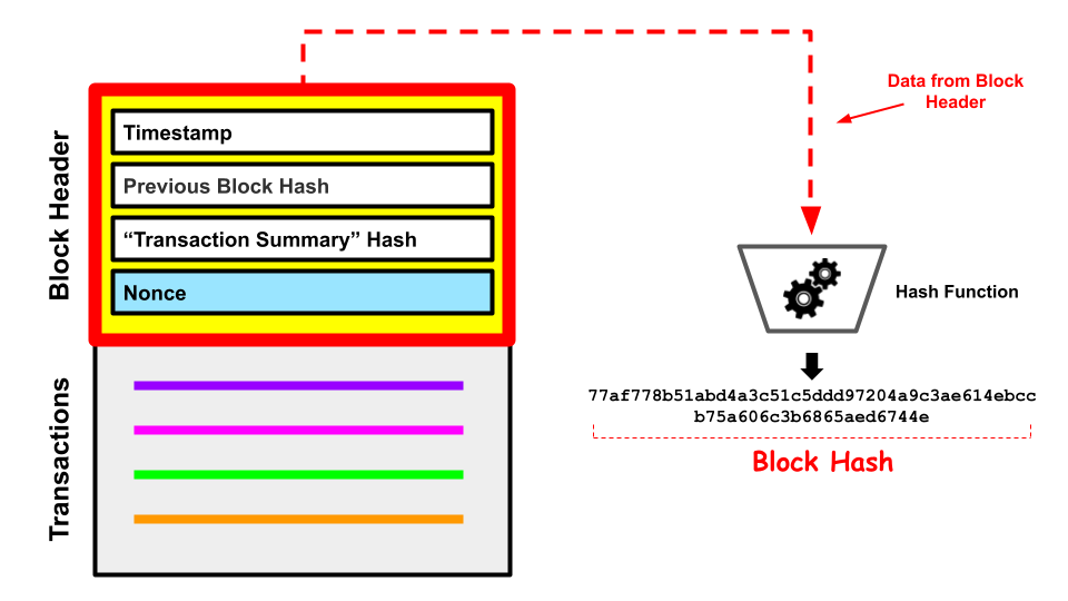 What this hash provides is a unique “fingerprint” based on all the transactions included in a block.