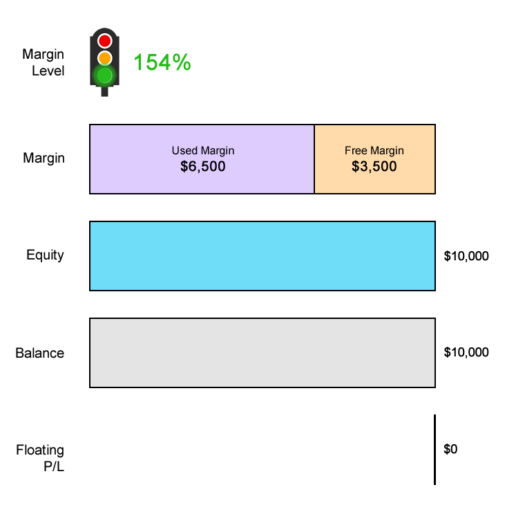 Margin Level = (Equity / Used Margin) x 100% 154% = ($10,000 / 6,500) x 100%
