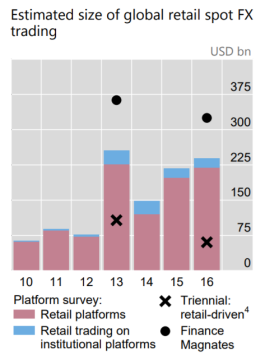 And then, if you just want to count the daily trading volume from retail traders (that’s us), it’s even smaller.It is very difficult to determine the exact size of the retail segment of the FX market, but it’s estimated to be around 3-5% of overall daily FX trading volumes, or around $200-300 billion (probably less).
